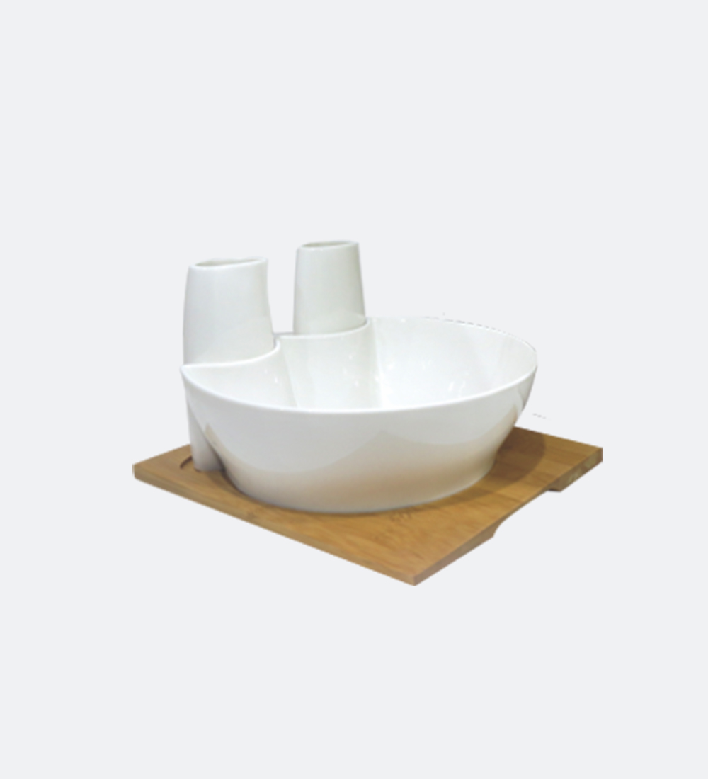 3 Pcs Porcelain Salad Bowl & Bamboo Tray