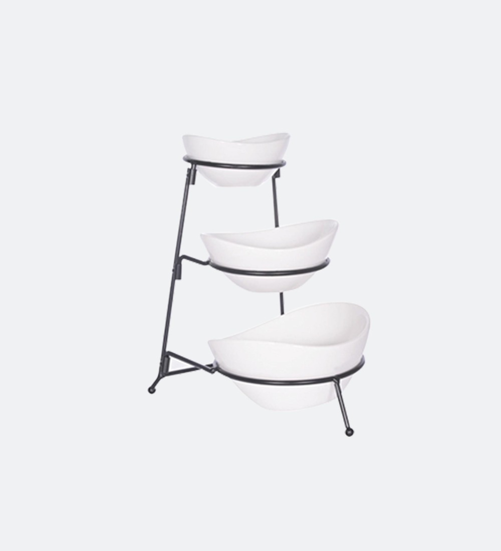 Set Of 3 Pcs Ceramic Bowl With Rack